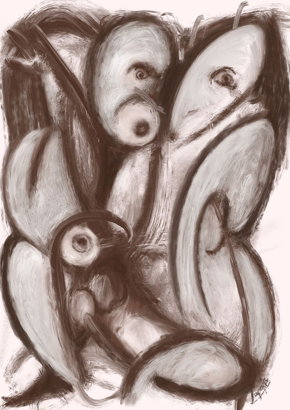 "Piramide humana" 30 x 30 cm, Gouache and Ink on paper, Barcelona 2009